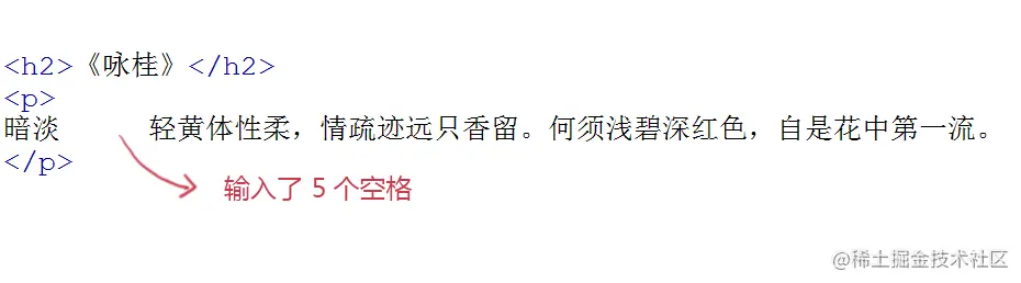 <p> 标签的默认样式,可以在上图中看出来,段前段后都会有空白,如果不喜欢这个空白,可以用 css 样式来删除或改变它,在后面课程中会学习到。