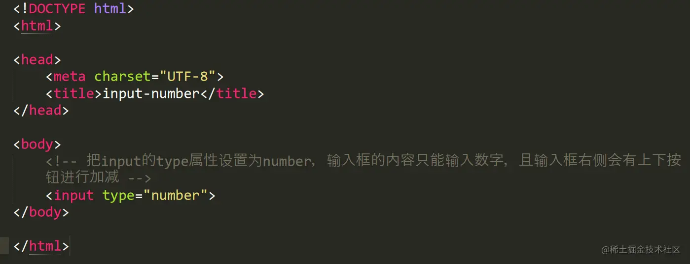 input 的 type 属性设置为 number ,则表示该输入框的类型为数字。