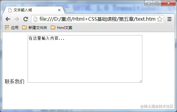当用户需要在表单中输入大段文字时,需要用到文本输入域。