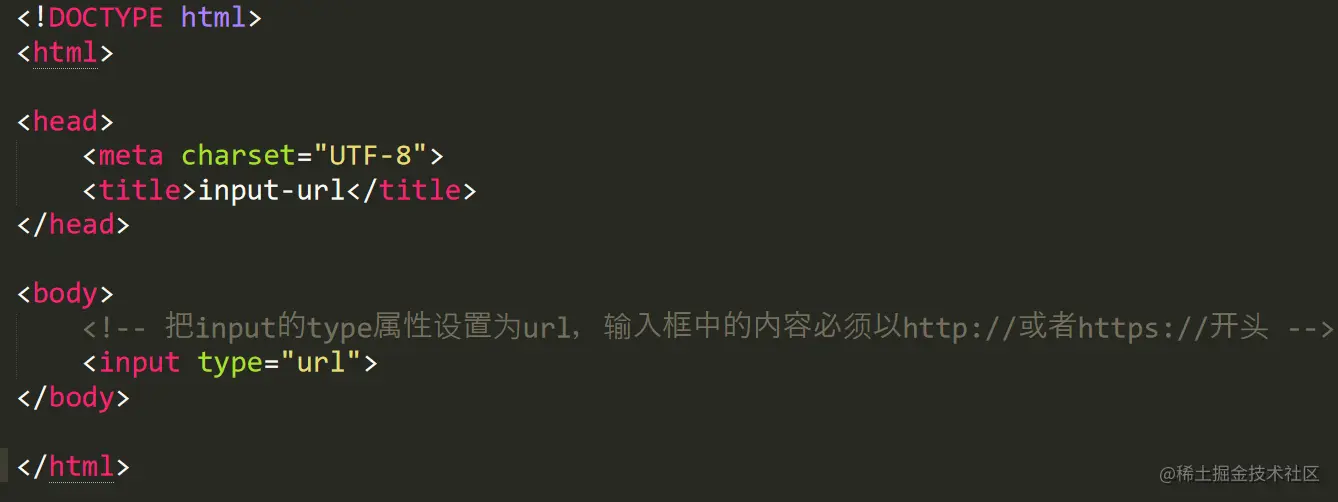input 的 type 属性设置为 url ,则表示该输入框的类型为网址。