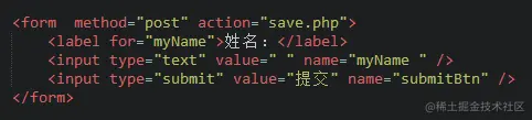 <input type="text" name="myName">