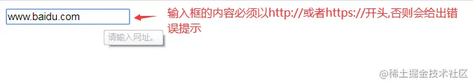 输入框的值需以 http:// 或者 https:// 开头,且后面必须有内容,否则表单提交的时候会报错误提示。