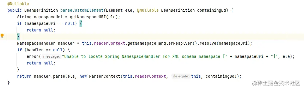 这个里面有一个this.readerContext.getNamespaceHandlerResolver().resolve(namespaceUri)