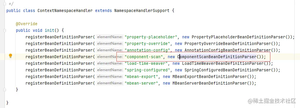 http\://www.springframework.org/schema/cont… ComponentScanBeanDefinitionParser()对应的解析器