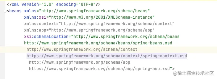 上一讲已经成功解析了默认配置文件中的元素,那么回过头来看配置文件,会不难的发现配置文件最上面有一排密密麻麻的url,这排url不是随手写的属性,是对当前文档规范的定义,一种叫dtd,另一种是xsd,说白了就是认识配置文件中的一个个标签。