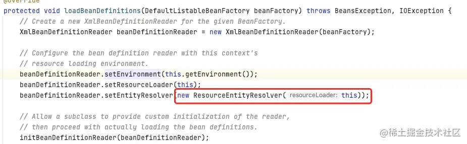 这个方法会为指定的 ResourceLoader 创建 ResourceEntityResolver