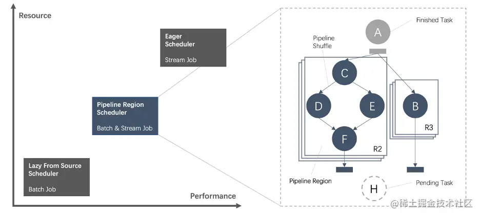本质上,不管是流作业还是批作业,都是按照Pipeline Region粒度来申请资源和调度任务。