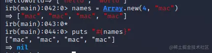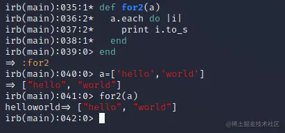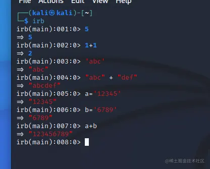 在kali中输入irb或者在msf中输入irb都可以启动Ruby