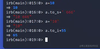 通过上述命令会发现Ruby的变量赋值与字符串拼接和python并无区别,并且变量可以直接赋值
