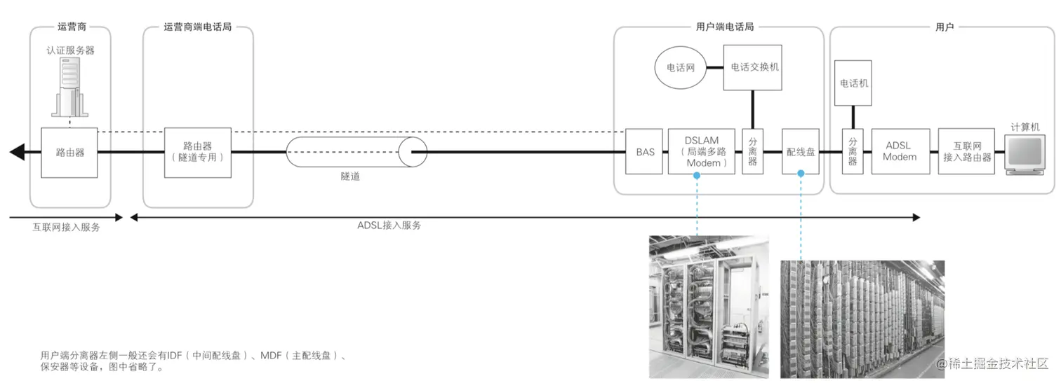 整个ADSL的接入大致内容介绍完成,当然这里讨论的只是整体的部分,深入各个部分的细节内容会越发的复杂,这部分不是个人学习重点不做过多探究,感兴趣的读者可以根据步骤翻阅相关资料深入了解。