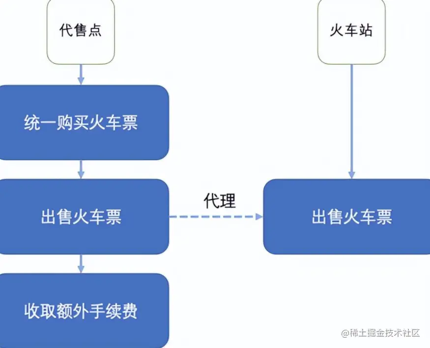 事实上在生活中我们常常会遇到各种各样的代理模式,例如火车票代售点代理出售火车票,他在“帮忙”出售火车票的同时,收取了额外的手续费,记录了自己店里的流水等。