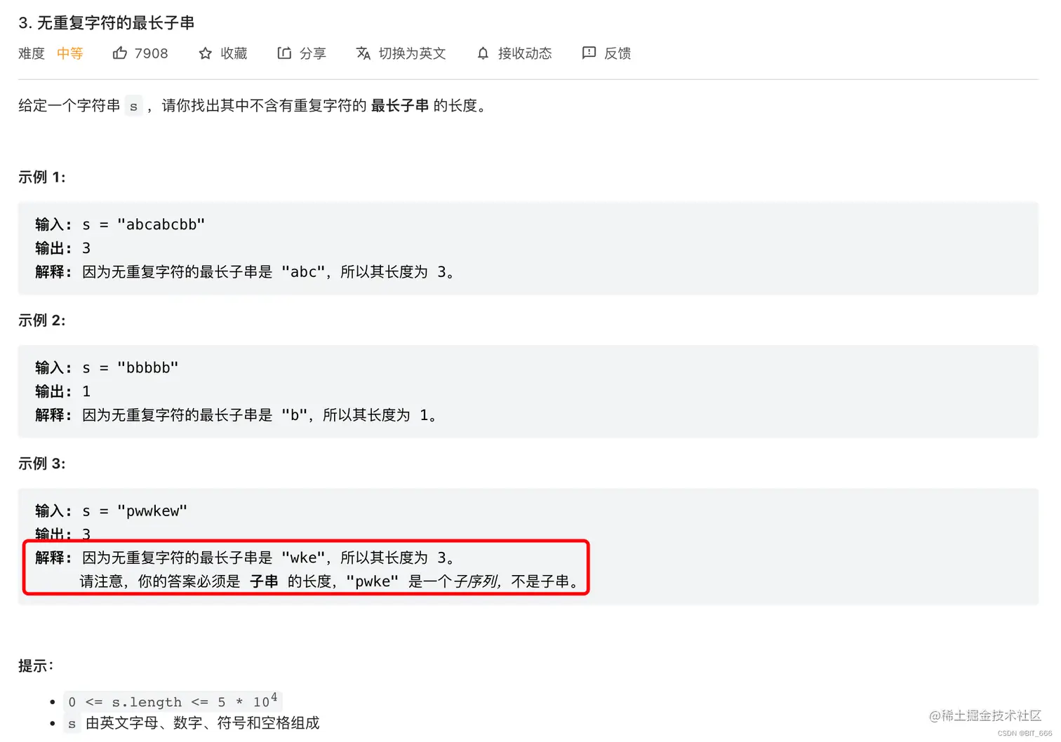 给定字符串 s,要求找出字符内无重复的最长子串,注意是子串不是子序列。