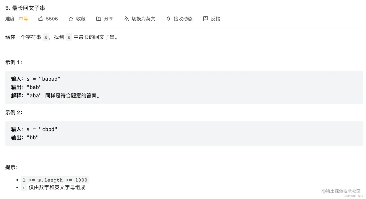 给定字符串 s,寻找其最长回文子串,这里解释下什么是回文串,即正反一样的字符串,例如 aabbaa,aba,ccccc 均为回文子串,注意最长无重复子串返回字符串长度而本例返回字符串。