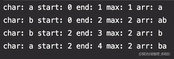 为了直观,我们加入了日志打印,以 s = "abba" 为例进行测试: