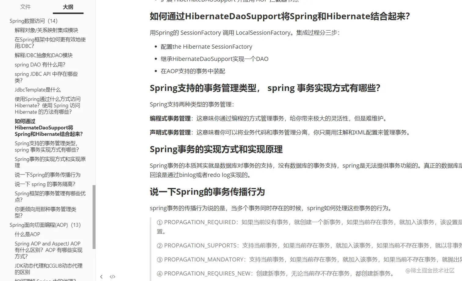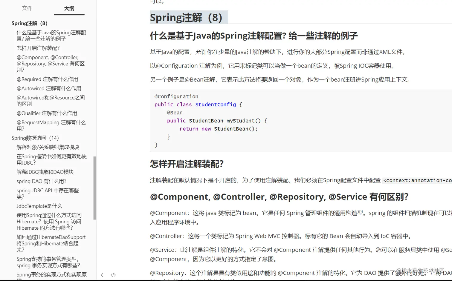 这份文档手册主要是讲面试过程中遇到的一些 Spring 相关的面试题。这些面试题多数是相对较宏观层面的 Spring 只是,不会涉及到啥时候用啥注解或者说具体某个配置如何设置之类的问题。