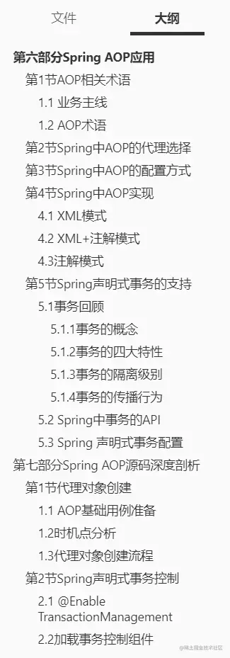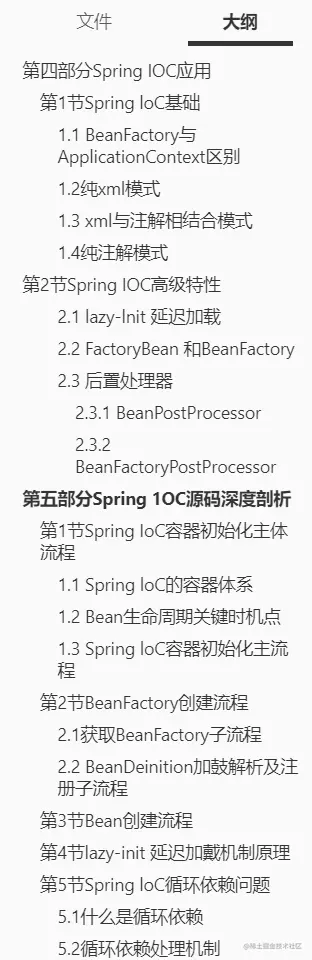 目前市面上有关于Spring 源码详细全面且实用的笔记手册比较少,尤其对于初学者来讲,学习成本依旧很高,当然 “授人以鱼不如授人以渔”,最近整理了这份Spring 深度源码分析笔记手册,从基础到应用再到源码解读都写得很清楚,共319页! 希望大家的学习进阶会有较大的帮助!由于篇幅原因,本文只展示了目录和内容截图,有需要学性能调优的朋友可以点进去了解一下,点击——【传送门】——即可!