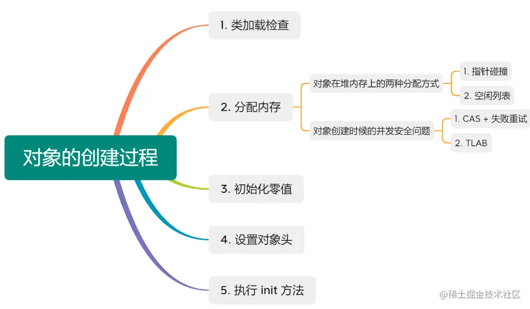 类加载检查:检测将要new对象的类是否经过“加载-链接-初始化”,如果没有,则执行类加载;如果有,就分配内存。