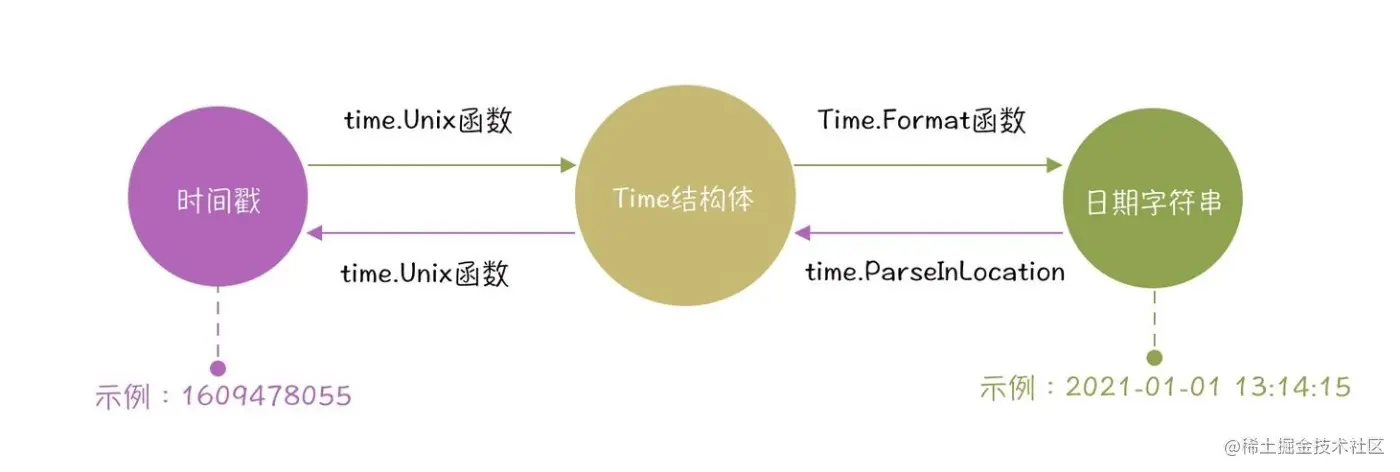 golang中的时间操作在time包中,时间操作的基础是基于一个Time的结构体,时间相关的操作都需要先转换成Time结构体,再通过Time结构体相关的函数转换成目标值。