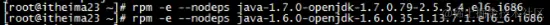 - 卸载两个openJDK,输入rpm -e --nodeps 要卸载的软件