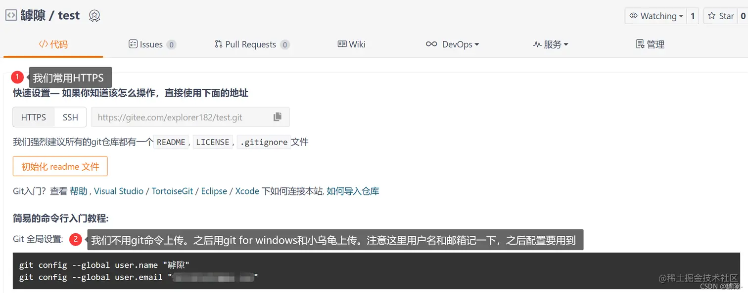 本文采用的是gitee网站。虽然gitee不如github有名,但gitee毕竟是国产的,提示都是中文,使用起来也更加流畅。