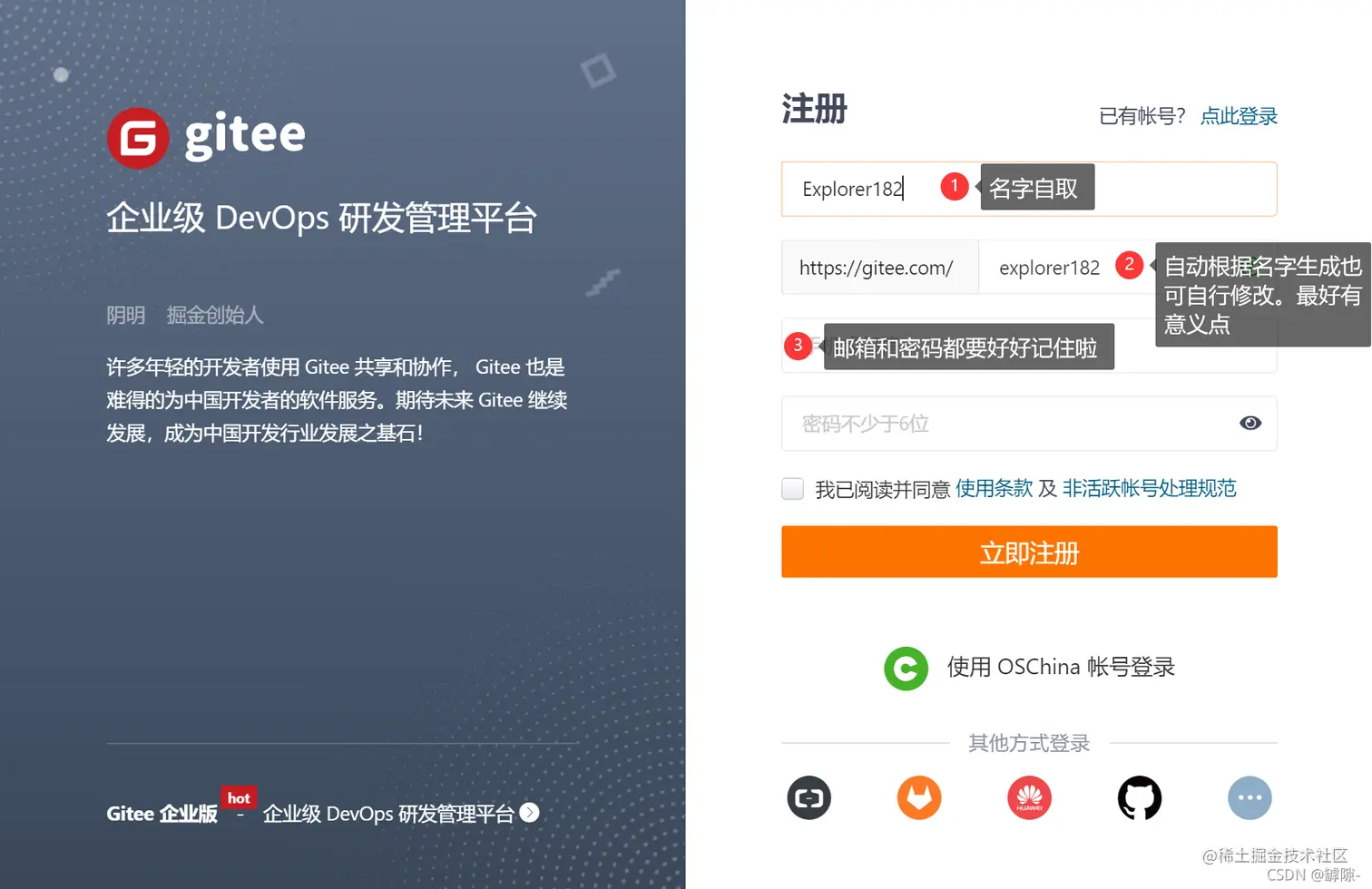 查看gitee用户名,注意用户名不包含@
