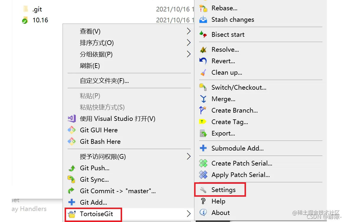 右键进入tortise的settings