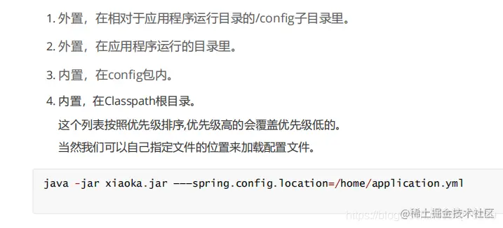 - 打包在应用程序内的application.properties或者appliaction.yml文件