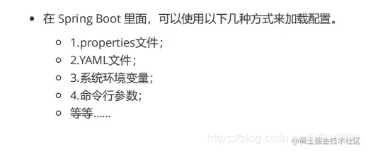 - Spring Boot 可以通过 @PropertySource,@Value,@Environment, @ConfifigurationPropertie注解来绑定变量
