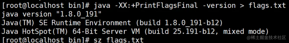 java -XX:+PrintFlagsFinal -version > flags.txt