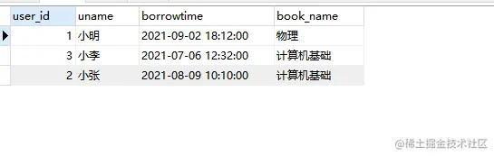 select a.user_id ,c.uname,a.borrowtime ,b.book_name book_name