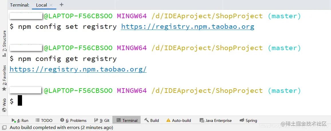 检查当前npm是否为淘宝镜像