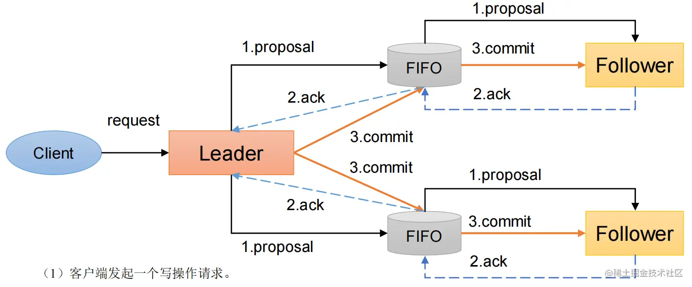 - Leader 发送 proposal 时,其实会为每个 Follower 创建一个队列,都往各自的队列中发送 proposal。Leader 收到请求后,依次放到队列中,然后 Follower 依次从队列中获取请求,这样就保证了数据的顺序性。