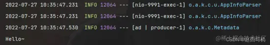 kafkaTemplate.send("my-topic","Hello~");