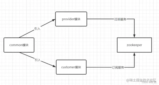 - provider:生产者,提供服务:实现common模块的interface接口