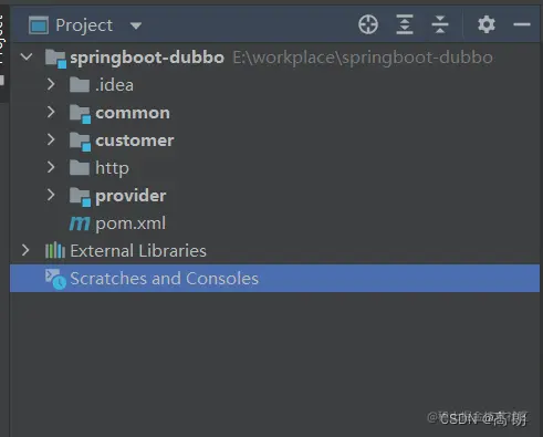 common模块是一个公共模块,把生产者消费者都需要的依赖,都统一导入common模块,然后其他模块引入common模块,还有都需要用到的实体类,需要远程调用的服务接口都统一放在common模块。