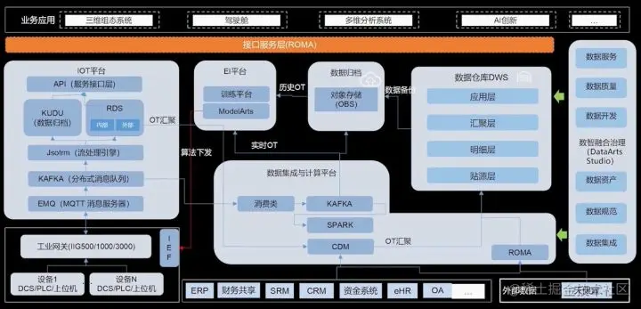 安永基于联合解决方案在为某集团数字化生产中心提供服务的过程中,通过完成生产关键设备数据、环境信息的采集、基于ROMA实现各系统间数据分发,实现结构化、非结构化、实时、离线数据集成并构建大数据平台,通过DataArts Studio和DWS实现各类数据的整合处理,形成企业级数据底座。基于大数据平台数据实时分析能力,实现生产实时预警及监控,基于大数据平台支持BI企业综合营运分析和领导决策支持。