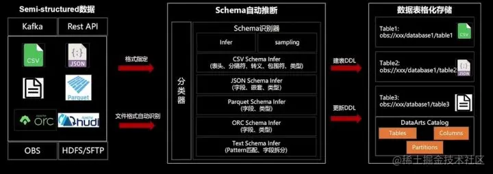 - 支持OBS、HDFS/SFTP、Kafka、REST等数据存储上的文件、消息元数据自动发现;
