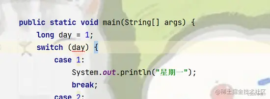 这里我们 就来 根据 day 的值输出星期 来 熟悉 一下 switch 语句