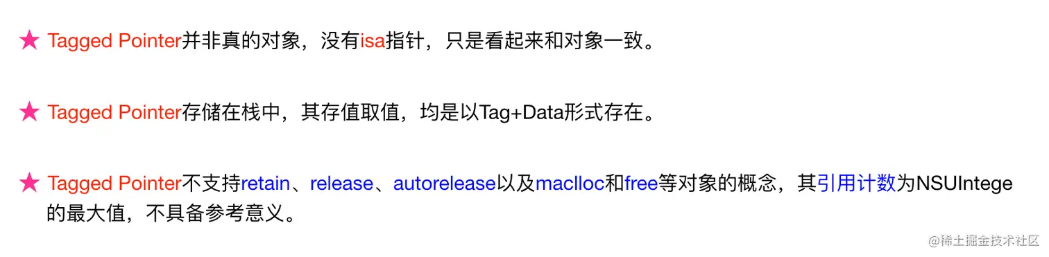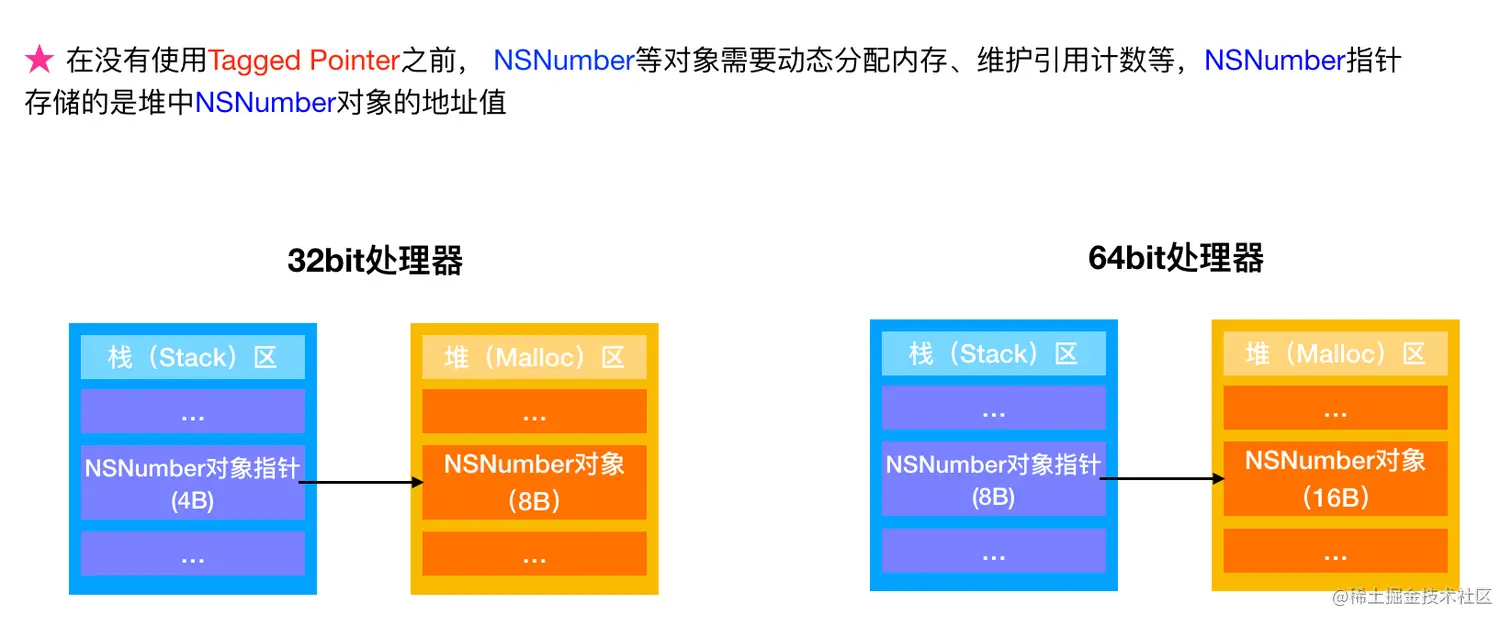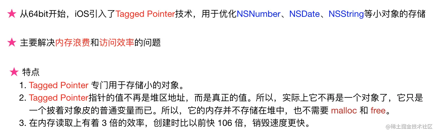 即针对NSString、NSNumber、NSDate、NSIndexPath这些类型,都支持Tagged Pointer技术。