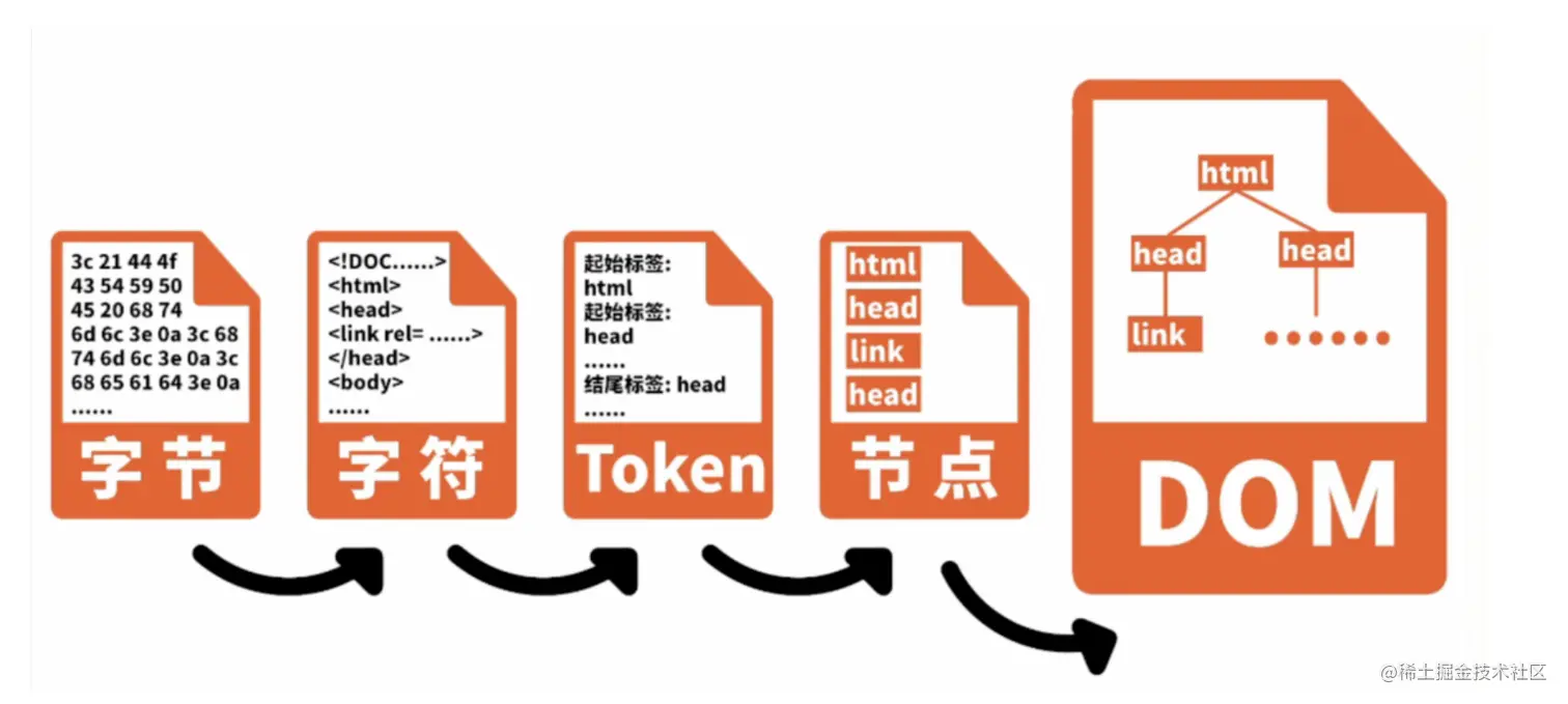 1.字节: 浏览器先得到的是字节内容的html文件。