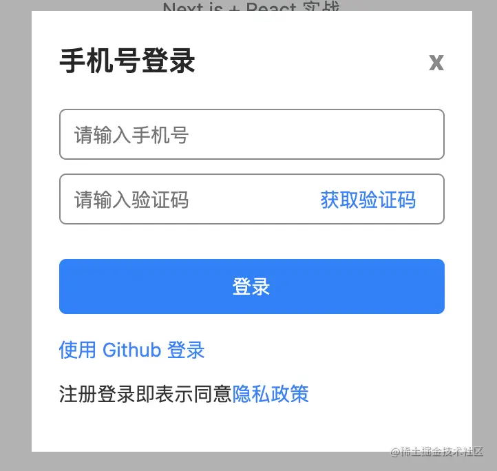 使用 props 中的 onClose 方法,onClose方法在父组件 Navbar 通过isShowLogin控制隐藏