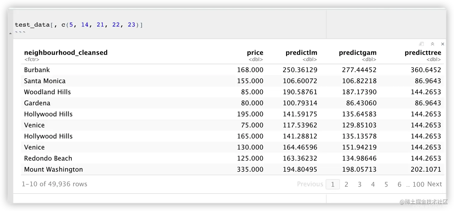 可以看出,GAM模型是三个模型中最适合的,然后可以依据该模型对price进行预测。
