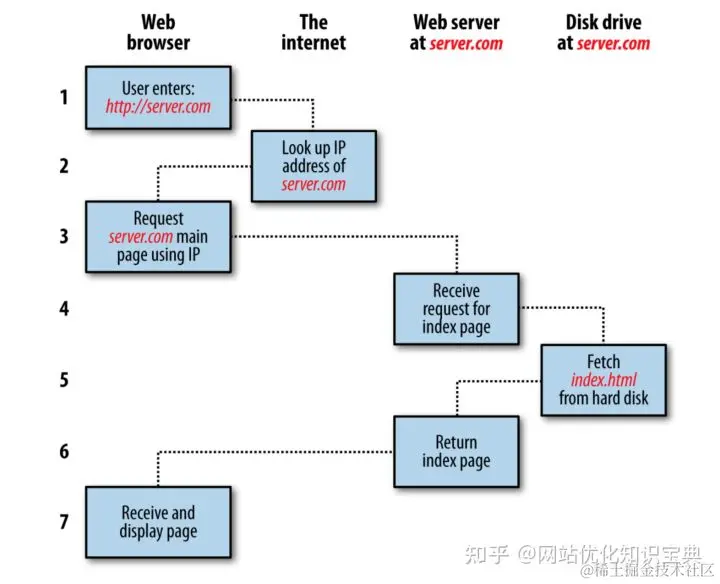 当用户在浏览器上输入域名回车后,浏览器就会将域名通过DNS服务转换成IP地址,之后拿着这个地址去请求网站所需要的文件,比如html,JS,CSS等资源,服务器收到浏览器的请求,如果是正常的请求,就会返回相应的资源文件,浏览器收到这些资源文件,就会将他们整合组装在一起,成为一个完整的网页界面,这就是用户输入域名到看到一个完整网页的过程,往往就是2,3秒的时间,但是就是这么短的时间内,浏览器和服务器共同为我们做了很多事。