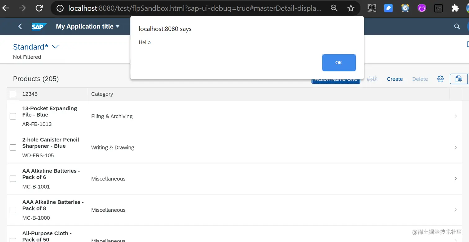 点击之后,弹出了 onCustomAction1 里调用的 alert 语句: