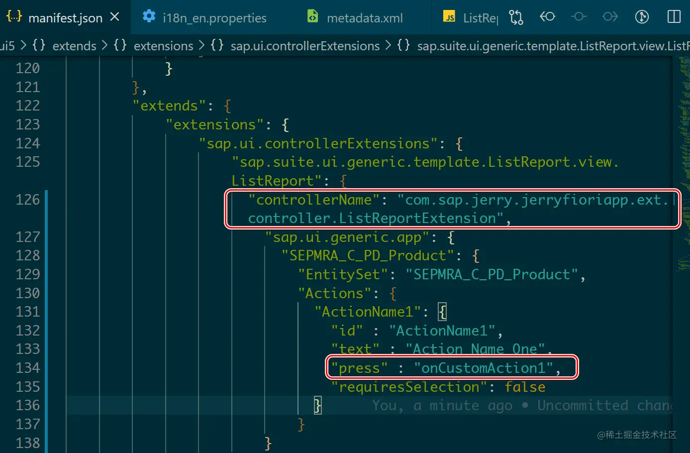 我们需要创建一个 sap.ui.controllerExtensions 的具体实现,该扩展的 id 为 com.sap.jerry.jerryfioriapp.ext.controller.ListReportExtension:
