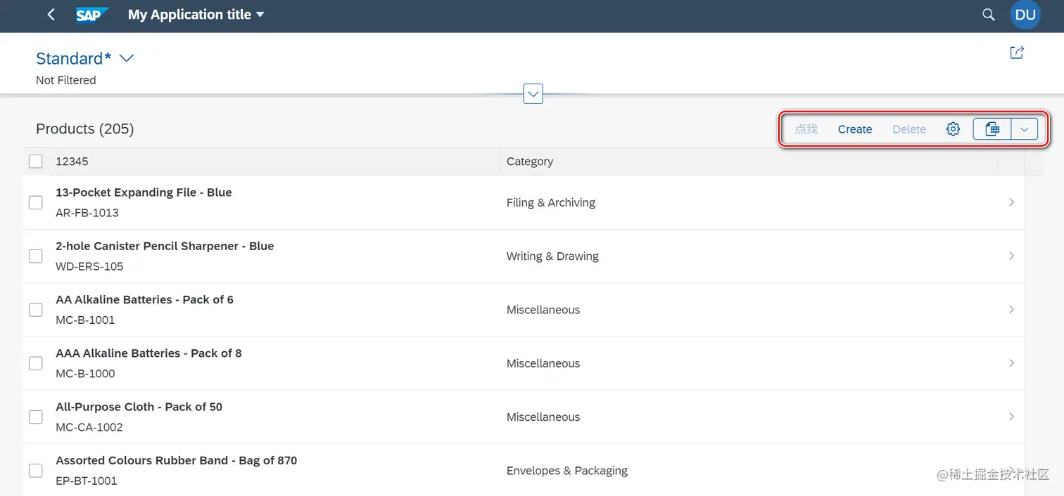 如下图所示,这是 SAP Fiori Elements List Report 一个例子,我们想在表格工具栏里,新增一个自定义按钮: