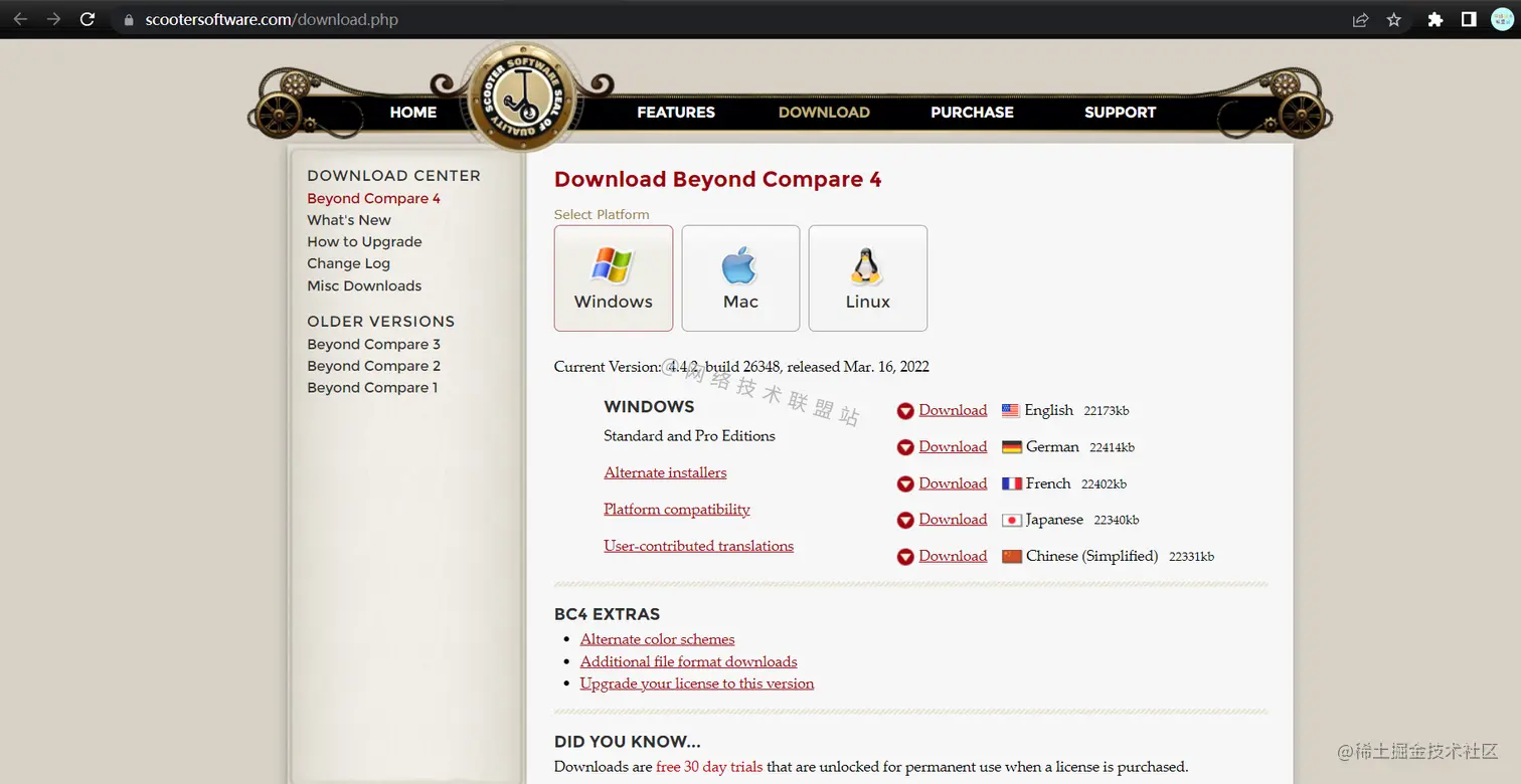 Beyond compare是一个简单易用的比较文件内容的工具,适用于多平台。