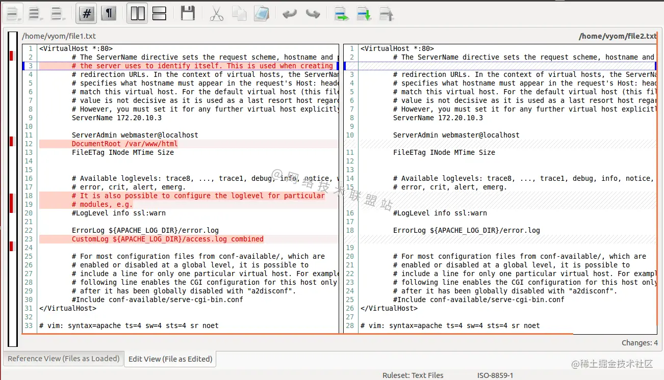 vimdiff比diff更高级,显示同一文件或文档的两个、三个或四个版本之间的差异。