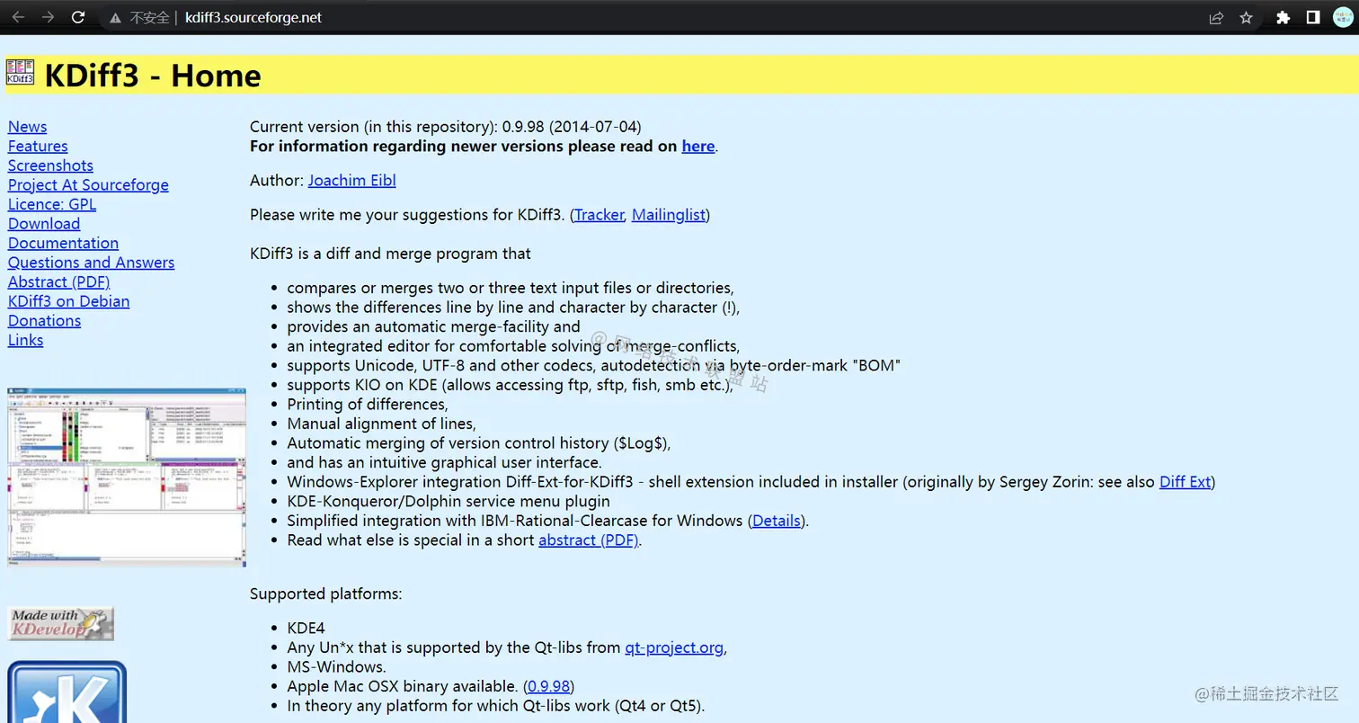 KDiff3是一个跨平台的差异和合并工具,适用于 Linux、macOS 和 Windows。它是一个文件和文件夹合并工具,用于比较和合并两到三个文件和目录。