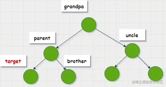 - uncle 叔父节点或者 parent的兄弟节点